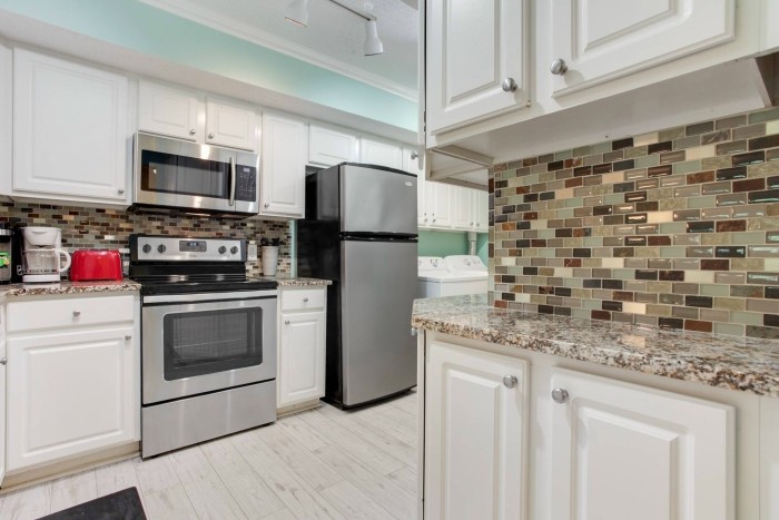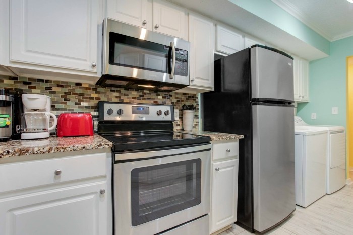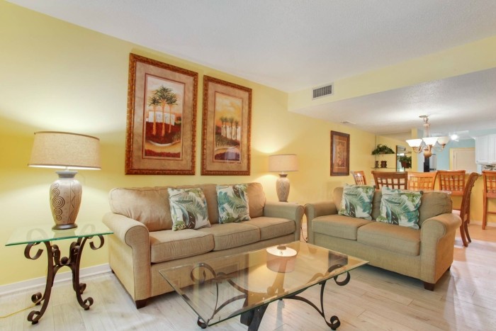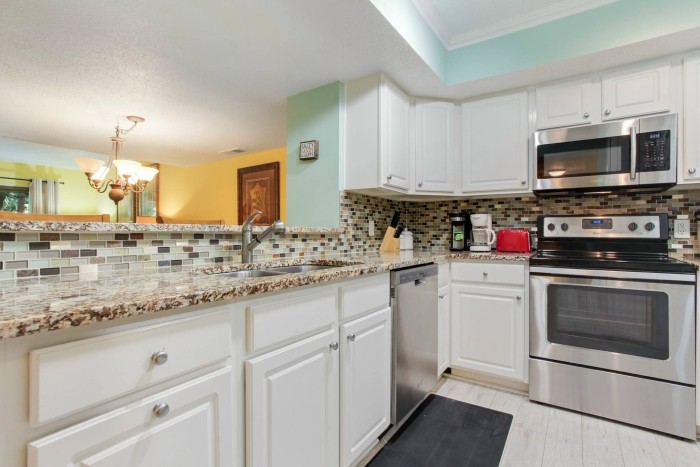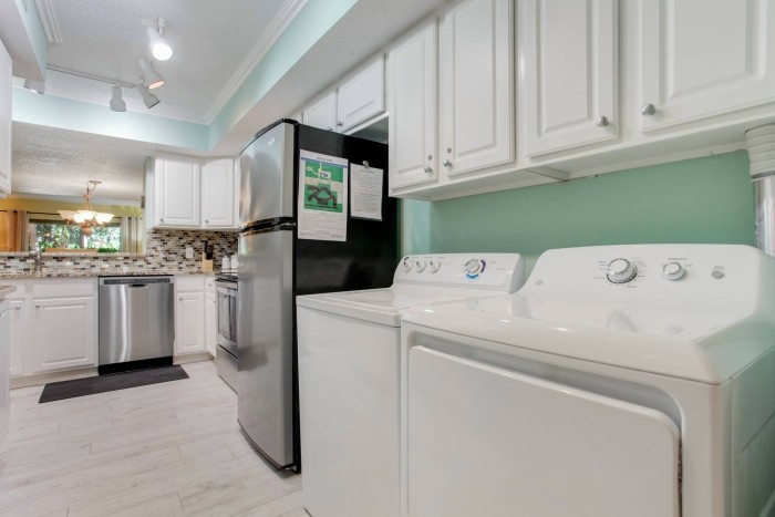 124 OCEAN ONE This spacious villa comes fully furnished and completely equipped modern kitchen, all appliances, refrigerator, dishwasher, microwave, washer/dryer, disposal, ice maker, (3) TV’s with cable, (1) dvd’s, small appliances, all cookware, utensils, central AC, all bath and bed linens, blankets, ironing board and starter supply of soaps and tissues…