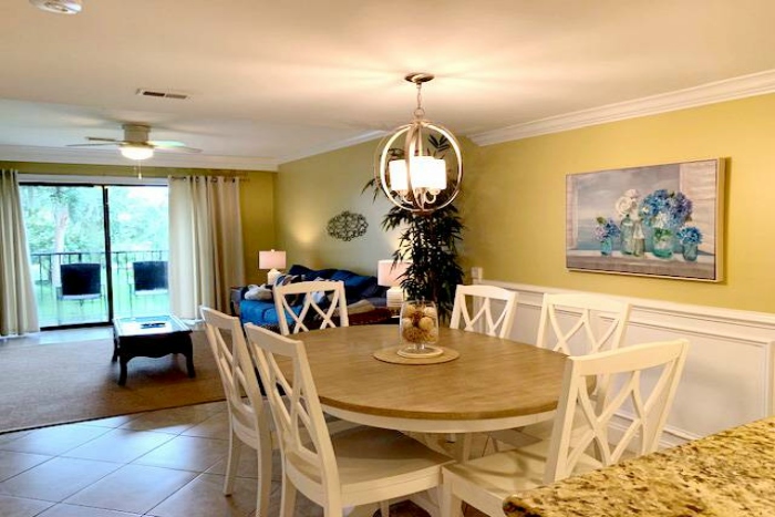 14 SURF COURT comes fully furnished and completely equipped with modern kitchen, all appliances, refrigerator, dishwasher, microwave, washer/dryer, disposal, ice maker, (3) TV’s with cable, small appliances, all cookware, utensils, central AC, all bath and bed linens, blankets, ironing board and starter supply of soaps and tissues… Free internet with Golf & Biking Discounts available!