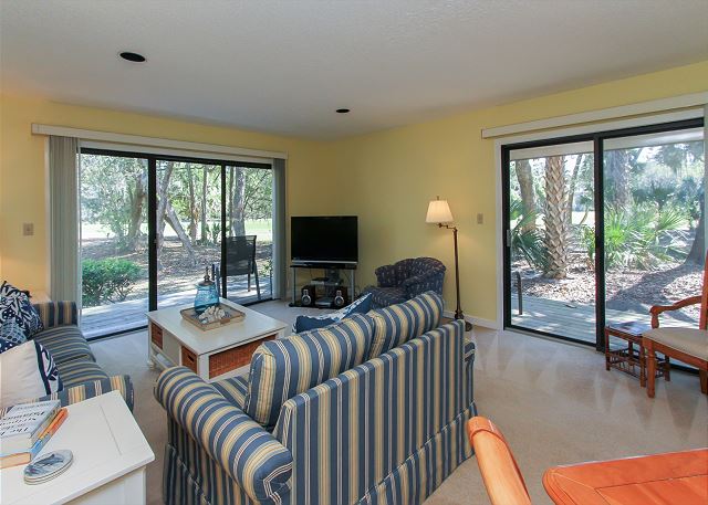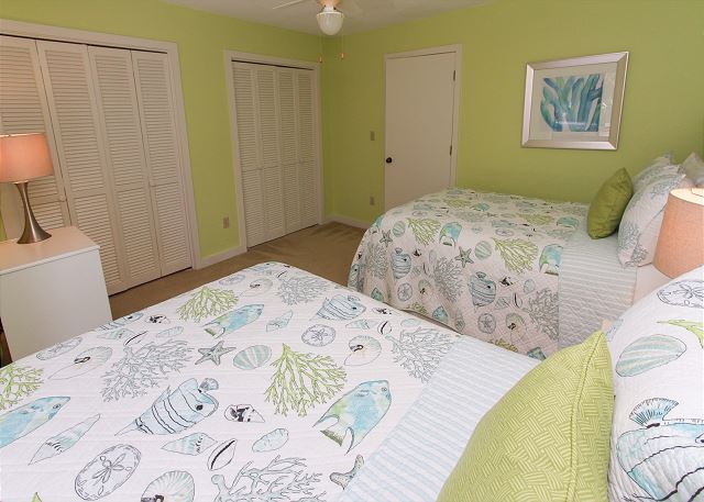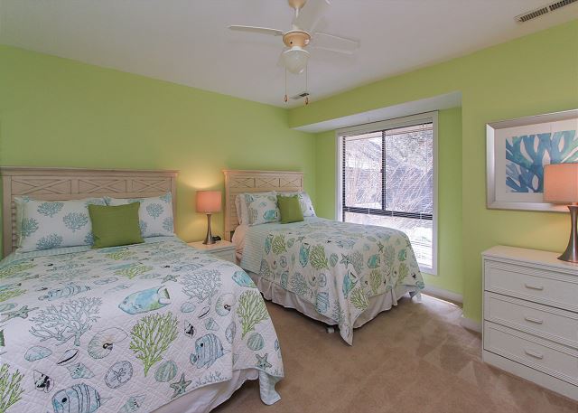 This 2 bedroom, 2.5 bath townhouse with private deck, comes with spectacular fairway views. Beautifully decorated and conveniently located near Van Der Meer Shipyard Racquet Club and the beautiful Sonesta Resort. This villa is furnished in pretty sea blues, greens and taupe. Private pool on-site, the beach within easy walking distance, and golf only a mile away. A bike path running alongside the villas provides easy access to the amenities of the plantation. FREE Tennis at the Van Der Meer Shipyard Racquet Club. This villa also has FREE high-speed DSL internet access.