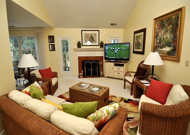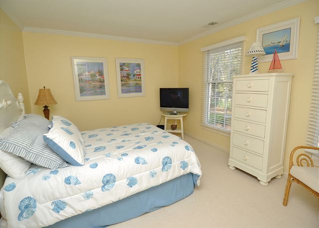 This lovely 2 bedroom, 2 bathroom townhouse is located in the heart of Shipyard Plantation. Decorated in warm colors and recently updated, you will experience graceful seclusion while being centrally located to all of Shipyard Resort’s amenities. This pretty villa has a spacious living room and dining room. Off the dining room is access to your private deck. The master bedroom has a king bed and the 2nd bedroom has a queen bed. You are only a short bike ride to the beach and all Shipyard Resort amenities. In 2013 the homeowner’s added a new 55″ flat screen high definition television with blu ray dvd player in the living room and a 40″ flat screen tv in the master bedroom. All bedding in both bedrooms has been replaced. Free highspeed wireless internet access. Free tennis on site. 3 flat screen tv’s, 1 blu ray dvd player.
