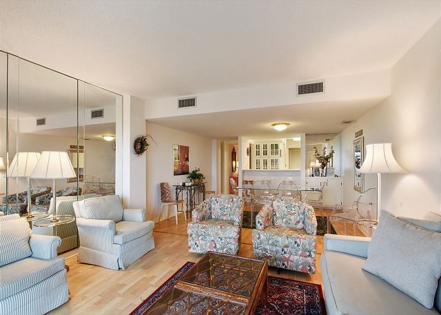 307 OCEAN ONE This spacious villa comes fully furnished and completely equipped modern kitchen, all appliances, refrigerator, dishwasher, microwave, washer/dryer, disposal, ice maker, (3) TV’s with cable, (1) dvd’s, small appliances, all cookware, utensils, central AC, all bath and bed linens, blankets, ironing board and starter supply of soaps and tissues…
