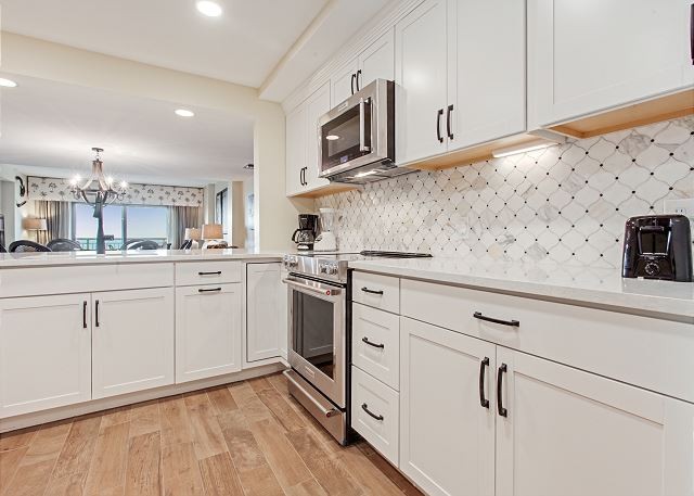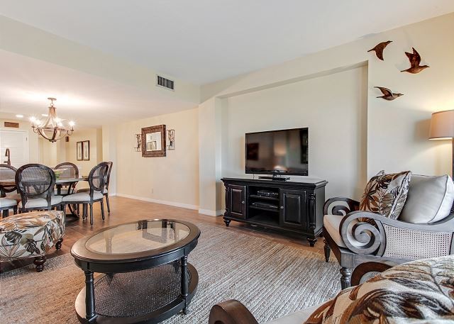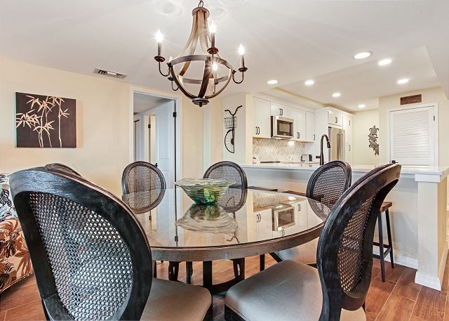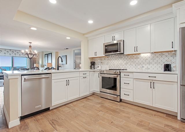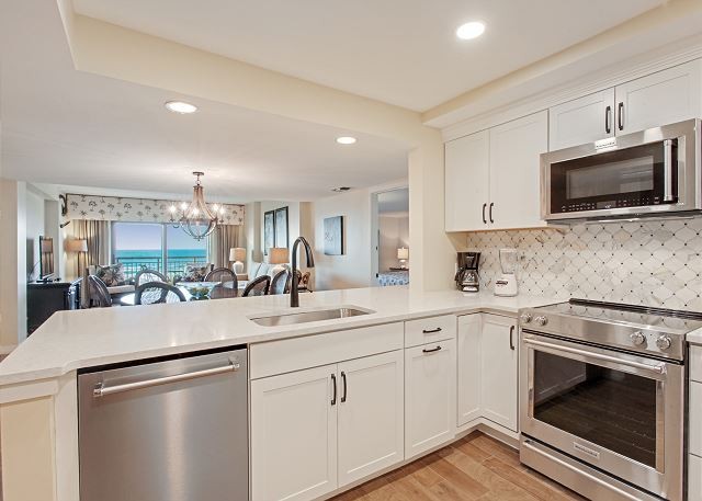 401 OCEAN ONE This spacious villa comes fully furnished and completely equipped modern kitchen, all appliances, refrigerator, dishwasher, microwave, washer/dryer, disposal, ice maker, (4) TV’s with cable, (4) dvd’s, small appliances, all cookware, utensils, central AC, all bath and bed linens, blankets, ironing board and starter supply of soaps and tissues…