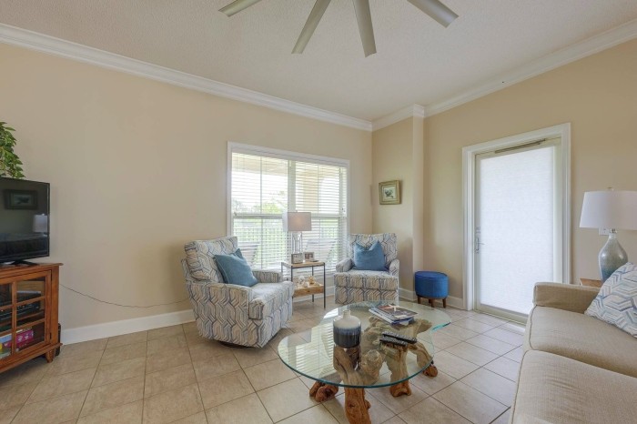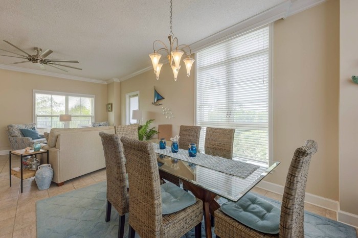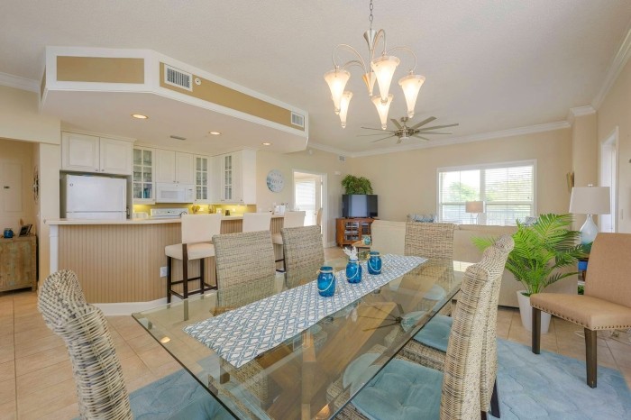 406 NORTH SHORE This bright and airy two-level 4th floor condominium features a spacious open floor plan with three bedrooms and three full bathrooms. The kitchen is very well stocked with all the comforts of home. The dining room comfortably seats six with additional seating at the kitchen bar. The living room offers comfortable seating and a large wall-mounted smart television. The master bedroom is on the 2nd floor and features a king-size bed. Bedroom 2 is on the main level and has a queen bed. Bedroom 3 is also on the 2nd floor and has 1 queen and 1 twin bed. The roof top pool and hot tub are just outside the entry door of this unit. Unit 406 also offers a wraparound balcony just off the living room which is perfect for a relaxing meal or cool drink. This rental includes privileges at the Oceanside Sea Crest Pool where the famous “Pool Bar Jim’s” is located.
