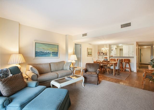 406 OCEAN ONE is a newly decorated 1st floor oceanside villa offering garden & courtyard views from your large balcony that can be accessed from the master bedroom and living room area. The villa offers 3 bedrooms and 3 baths, the master offers (1) king & private bath, the 2 bedroom offers (1) queen with private bath and the 3rd bedroom offers (2)twins.