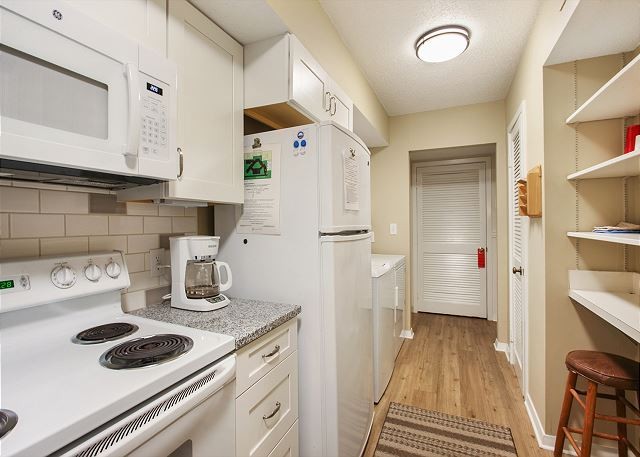 406 OCEAN ONE This spacious villa comes fully furnished and completely equipped modern kitchen, all appliances, refrigerator, dishwasher, microwave, washer/dryer, disposal, ice maker, (3) TV’s with cable, (1) dvd’s, small appliances, all cookware, utensils, central AC, all bath and bed linens, blankets, ironing board and starter supply of soaps and tissues…