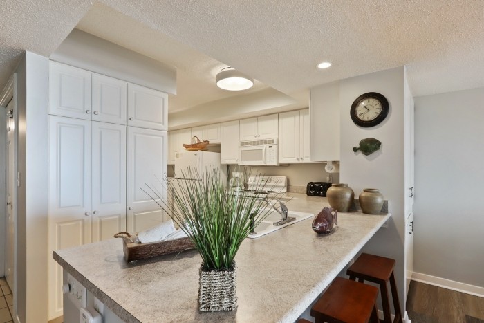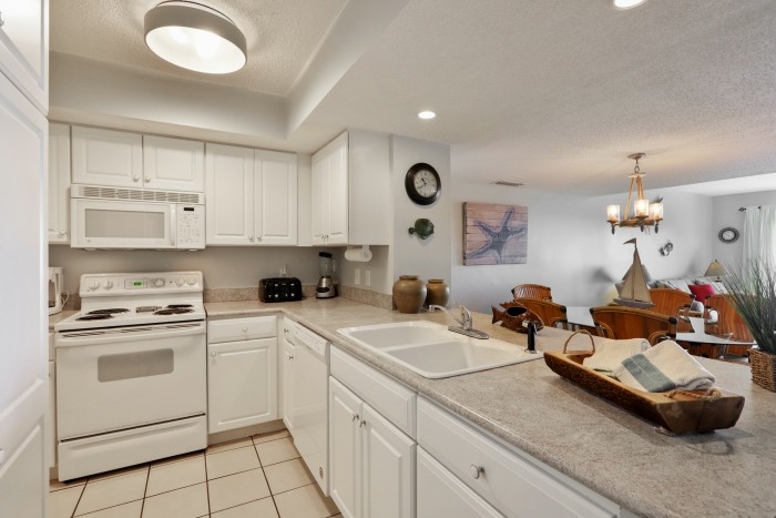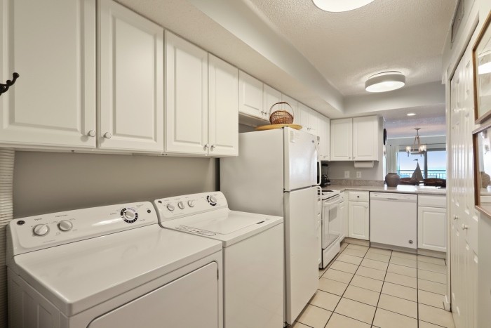 415 OCEAN ONE This spacious villa comes fully furnished and completely equipped modern kitchen, all appliances, refrigerator, dishwasher, microwave, washer/dryer, disposal, ice maker, (3) TV’s with cable, (1) dvd’s, small appliances, all cookware, utensils, central AC, all bath and bed linens, blankets, ironing board and starter supply of soaps and tissues…