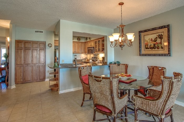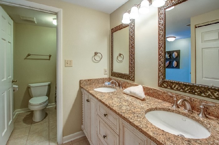 435 SHOREWOOD The kitchen is equipped with with all the necessities, beautiful granite countertops, stainless steel appliances and opens to the dining area that seats six. The living room is light and bright and comfortably furnished and features a large flat screen TV and sleeper sofa. The master bedroom is furnished with a king bed, updated en-suite bath and balcony access. The second bedroom has a queen bed and updated en-suite bath. The third bedroom has two twins and shares the hall bathroom.The Shorewood Complex is in the highly desirable Forest Beach area, and is within walking distance to the must see destination Coligny Plaza which offers over 60 shops and restaurants