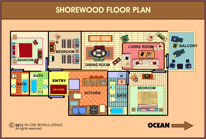 501 SHOREWOOD This beautifully decorated oceanfront 5th floor, penthouse offers 3 bedroom and 3 baths, (1) king, (1) queen, (2) twins, with sleeper sofa , sleeps up to 8. Completely furnished and totally equipped this villa features a large living room, with oceanfront & pool views, dining area, complete kitchen and a large private balcony with direct oceanfront view.