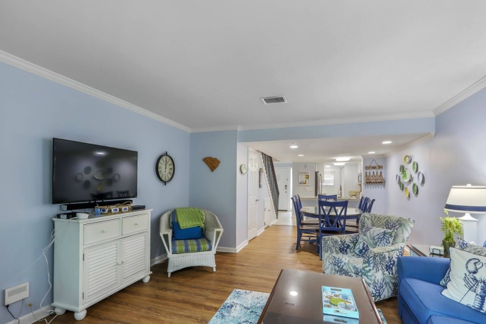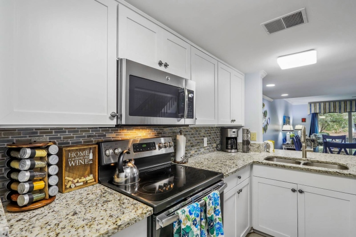 83 SURFCOURT comes fully furnished and completely equipped with modern kitchen, all appliances, refrigerator, dishwasher, microwave, washer/dryer, disposal, ice maker, (3) TV’s with cable, (1) dvd’s, small appliances, all cookware, utensils, central AC, all bath and bed linens, blankets, ironing board and starter supply of soaps and tissues… Free internet with Golf & Biking Discounts available!