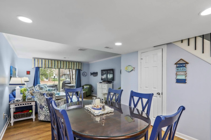 83 SURFCOURT is a newly decorated 3 story townhouse is just steps away from the pool and very close walking distance to the beach. The villa offers 3 bedrooms and 2.5 baths, (1) king, (1) queen and (2) twins 7 set of bunks, sleeps up to 8. Completely furnished and totally equipped this villa includes a large living room, dining area, complete kitchen, large private deck with views of the pool and courtyard.