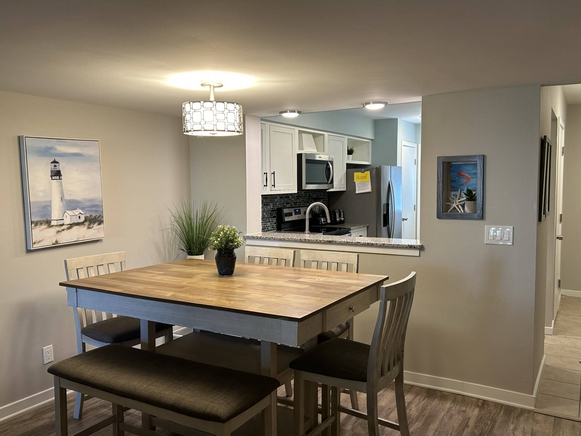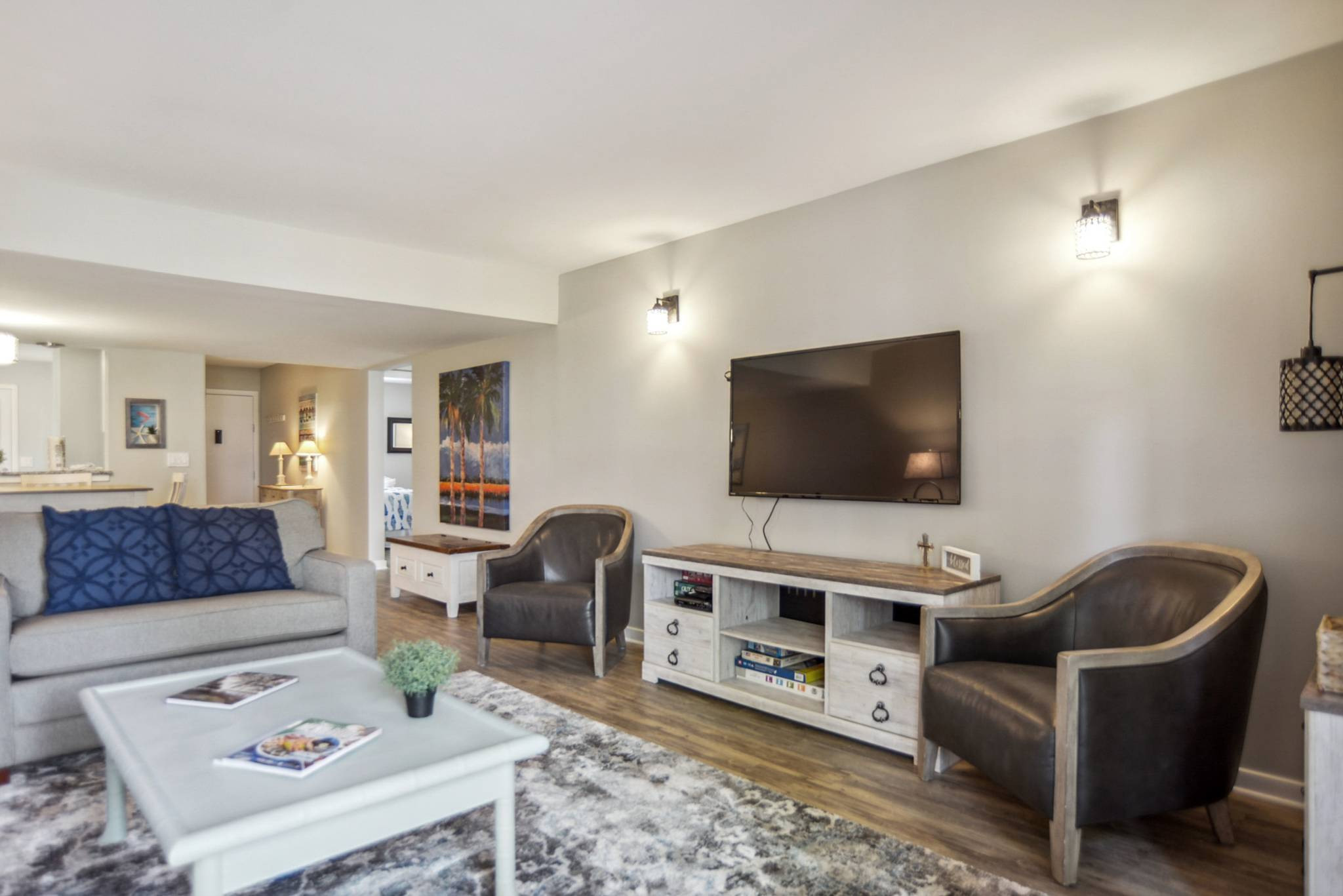 This quaint downtown area offers guests a wide selection of restaurants, shopping venues, and entertainment for all ages. This unit has 2 Queen Size Beds in the primary bedroom, 2 twins in bedroom 2 plus a twin sleeper in the living room along with 3 televisions for guests to enjoy.