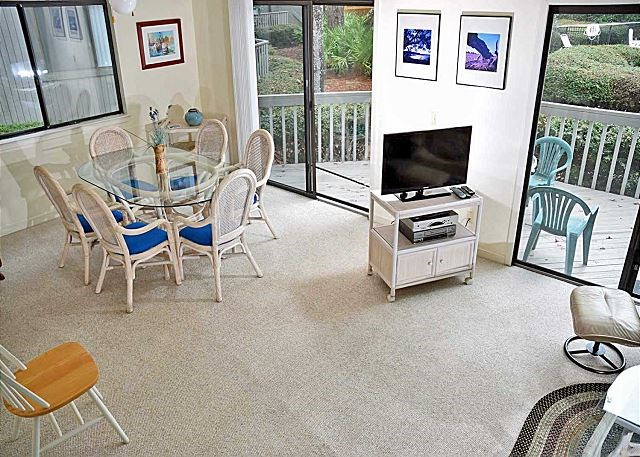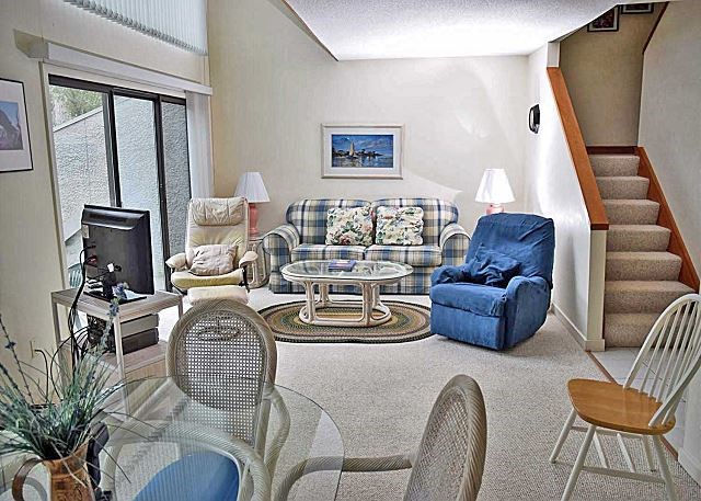 This ocean-oriented townhouse is two-stories with the entry and first floor a few steps above street level. Ocean Gate is within 1 block of the Atlantic Ocean beach. Vacationers seeking a quiet neighborhood and good value don’t mind the short walk to and from the ocean and like parking at the front door of their condo. Living room sliders to a deck provide easy access to nicely landscaped courtyard and swimming pool. Guests staying in Ocean Gate enjoy biking or walking the leisure trail that leads to Colign Plaza and the Beach Park. This quaint downtown area offers a wide selection of restaurants, shopping venues, and entertainment for all ages