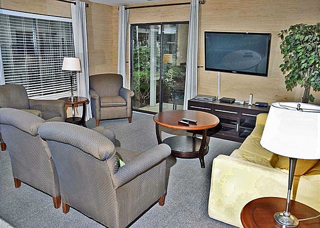 The property comes fully furnished and completely equipped with modern kitchen, all appliances, refrigerator, dishwasher, microwave, washer/dryer, disposal, ice maker, (3) TV’s with cable, (1) dvd’s, small appliances, all cookware, utensils, central AC, all bath and bed linens, blankets, ironing board and starter supply of soaps and tissues… One hour free TENNIS, internet with Golf & Biking Discounts available!