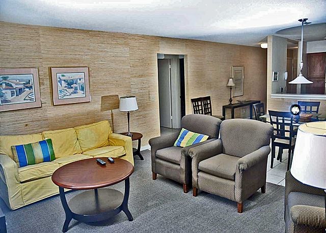 This beautiful 2nd level townhouse is just steps away from the pool and very close 3 block walking distance to the beach. The villa offers 3 bedrooms and 3 baths, (1) king, (2) queens, (2) twins, with sofa bed , sleeps up to 9. Completely furnished and totally equipped this villa includes a large living room, dining area, complete kitchen, large private deck with views of the pool and courtyard.